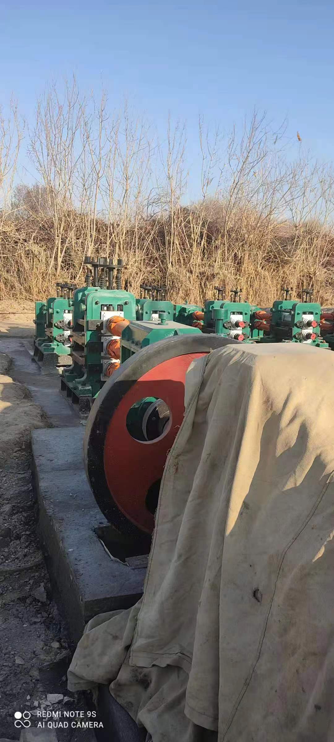 序號(hào) 名稱 數(shù)量 1 φ250三輥軋機(jī);中心距250mm;輥面長(zhǎng)度600mm 1 2 主電機(jī);P=145KW;直流電機(jī) 1 3 飛輪組;飛輪φ1500mm 1 4 三輥軋機(jī)減速機(jī) ZD50 1 5 三軸齒輪機(jī)座;A=250MM 1 6 萬(wàn)向節(jié)SWC250 3 7 聯(lián)軸器 1 8 φ220軋機(jī)電機(jī);P=55KW 7 9 φ220二輥軋機(jī);中心距220mm;輥面長(zhǎng)度450mm 7 10 連軋機(jī)聯(lián)合減速機(jī)ZD30 7 11 萬(wàn)向節(jié) 14 12 成品輸送輥道 長(zhǎng)度14M 1 13 冷床 長(zhǎng)度20米 1 客戶現(xiàn)場(chǎng)安裝照片